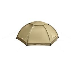 Rymligt och vindstabilt kupoltält med två generösa absider. Ett lätt och bekvämt vandringstält året runt, i alla förhållanden utom de mest exponerade. Två ingångar förenklar tältlivet, ni kan organisera varsin sida i tältet och använda enbart läsidans ingång i blåsigt väder. Här finns också gott om plats för utrustning, matlagning och pyssel när vädret är dåligt. Ytter- och innertält reses samtidigt. Konstruktionen med tre bågar gör tältet självstagande och enkelt att slå upp var som helst – använd stormlinorna för att förankra och göra tältet helt vindstabilt. Bågkanalerna är färgkodade för enkel hantering och dimensionerade så att du kan använda dubbla bågar (ett tillbehör) i utsatta förhållanden. Högt i tak ger bekväm sitthöjd och en social yta. Det finns en avtagbar näthylla i innertaket och flera nätfickor för smidig förvaring. Stora ingångar med finmaskigt myggnät gör att du kan njuta av utsikten från sovsäcken utan insektsbesök. Förslutningsbara ventilationsöppningar i olika höjd ger utmärkt luftflöde. Dessa tillsammans med möjligheten att fästa ytterdörren i halvöppet läge gör tältet till ett bra val i tropiska klimat. Yttertältet är i Fjällrävens nya, högpresterande TripleRip nylon och en innovativ konstruktion där två vävtjocklekar kombineras – 20 denier i ovandelen och 40 denier förstärkningar nertill där slitaget är som högst – ger mycket hög styrka trots låg vikt. Precis som alla Fjällrävens tält är Abisko Dome 2 tillverkat helt utan PVC-plast och giftiga flamskyddsmedel, och impregneringen är fluorkarbonfri.