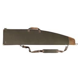 Rejält och ordentligt skyddande gevärsfodral med dubbla öppningar som gör det betydligt lättsammare att transportera ditt vapen i och utanför skogen. Sydd i kraftig vattenavvisande G-1000 HeavyDuty Eco med dubbla lager skumstoppning och quiltad insida i G-1000 Eco som håller geväret i tryggt förvar tills jakten börjar. Fodralet är dessutom så rymligt att du kan ha kikarsiktet monterat – justerbara remmar håller vapnet på plats och minskar risken för att optiken tar skada. Utvalda, slitstarka material och hög kvalitet i sömnad och detaljer ger en långlivad följeslagare som åldras med behag. Förvaringen är välplanerad med enkla men smarta funktioner som underlättar hanteringen, både ute i skogen och inför/efter jakten. En lång, robust dragkedja öppnar tillsammans med locket på kortsidan upp fodralet helt, vilket gör det lätt att få överblick, till exempel vid vapenvård. Dessutom gör det att fodralet kan användas som en sittdyna, till och med sittdyna med ryggstöd, när du sitter på pass. Dragkedjan är förberedd för att du ska kunna låsa fodralet med ett hänglås (ingår ej). Kortsidans öppning har ficklock och läderremmar med metallspännen. Vapenlicens och annat smått kan förvaras i en dragkedjeförsedd ficka på insidan av locket. Här finns också en större ficka, även den med dragkedja, som täcks av locket när det stängs till – praktisk för exempelvis ammunition eller slutstycke. Fodralet kan bäras antingen i handtagen med grepp i vegetabiliskt garvat läder, eller i den stoppade axelremmen, där den sistnämnda kan tas av när den inte används. En förvaringsväska i G-1000 Eco för slutstycke medföljer. Fodralet passar gevär upp till 125 cm.