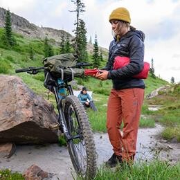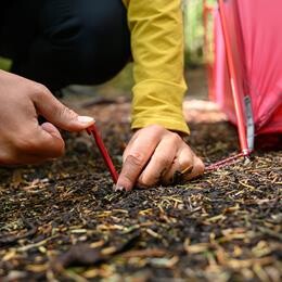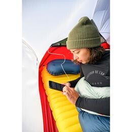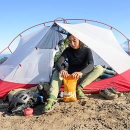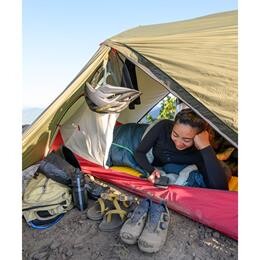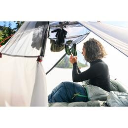 Invändigt är tältet rektangulärt med plats för all din utrustning och med en höjd på 107 cm kan du sitta bekvämt. Innerduken är en blandning av mesh och solidt tyg som ger bra luftgenomströmning, integritet och skydd mot väder. De böjda tältöppningarna har blixtlås som är lätta att använda med en hand. De stängs också med blixtlås till en punkt så att du alltid vet var du ska öppna dörren, även i mörker. Elektronikvänliga fickor har kabelportar i hörnen för laddningsledningar och stora takfickor är perfekta för handskar, solglasögon och andra snabba föremål. En inre torklina och valfri yttre torklina ger gott om utrymme att hänga fuktiga kläder och utrustning på.MSR Hubba Hubba Bikepack 2 är idealiskt för cyklister som vill ge sig ut på turer i naturen och ha ett lättviktigt tält som lätt kan packas och transporteras på cykeln. Tältet är utformat för att vara lätt att sätta upp så att du snabbt kan komma iväg när du är på tur. Det rymliga interiören ger dig gott om plats att sova och lagra din utrustning.
