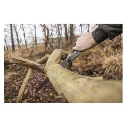 Silky Gomboy Folding Saw 210-10 är deras bästsäljande såg - förmodligen på grund av den perfekta balansen mellan liten storlek och stor prestanda. Silkys patenterade "Mirai-Me" tänder säkerställer ett rent snitt, oavsett vilken riktning du såg i förhållande till fibrerna. En ren klippning hjälper till att ge vackrare trähantverk, men ännu viktigare, det ger beskurna träd de bästa förutsättningarna för att läka snabbt och smidigt. Tändernas spetsar är induktionshärdade, vilket håller dem vassa i upp till tre gånger så länge som icke-induktionshärdade tänder, medan resten av bladet hålls mer flexibelt så att det inte går sönder. Gomboy är, liksom resten av Silkys sågar, utformad för att såga i dragriktningen medan den tar bort sågspån från skäret i skjutriktningen. Det ger bra kontroll och en bekväm, smidig sågupplevelse. Bladet kan låsas i två vinklar - rakt fram eller peka något uppåt i förhållande till handtaget. Det senare är särskilt praktiskt eftersom det skyddar dina händer när du behöver såga saker nära marken. Det gummibelagda handtaget är bekvämt att hålla och säkerställer ett bra grepp på sågen. Fällmekanismen är enkel att använda, vilket gör Silky Gomboy enkel och enkel att arbeta med. Nyckeln till Silky Gomboys mångsidighet ligger i storlek: sågen är tillräckligt stor för att snabbt och effektivt skära även stora grenar, medan sågen fortfarande är lätt och kompakt nog för att inte fylla och väga hela världen - du kan till och med ha den i ditt bälte . Sammantaget en otroligt mångsidig och väl utförd såg som snabbt blir ditt bästa verktyg när du lägger upp läger och ger ved till eld.